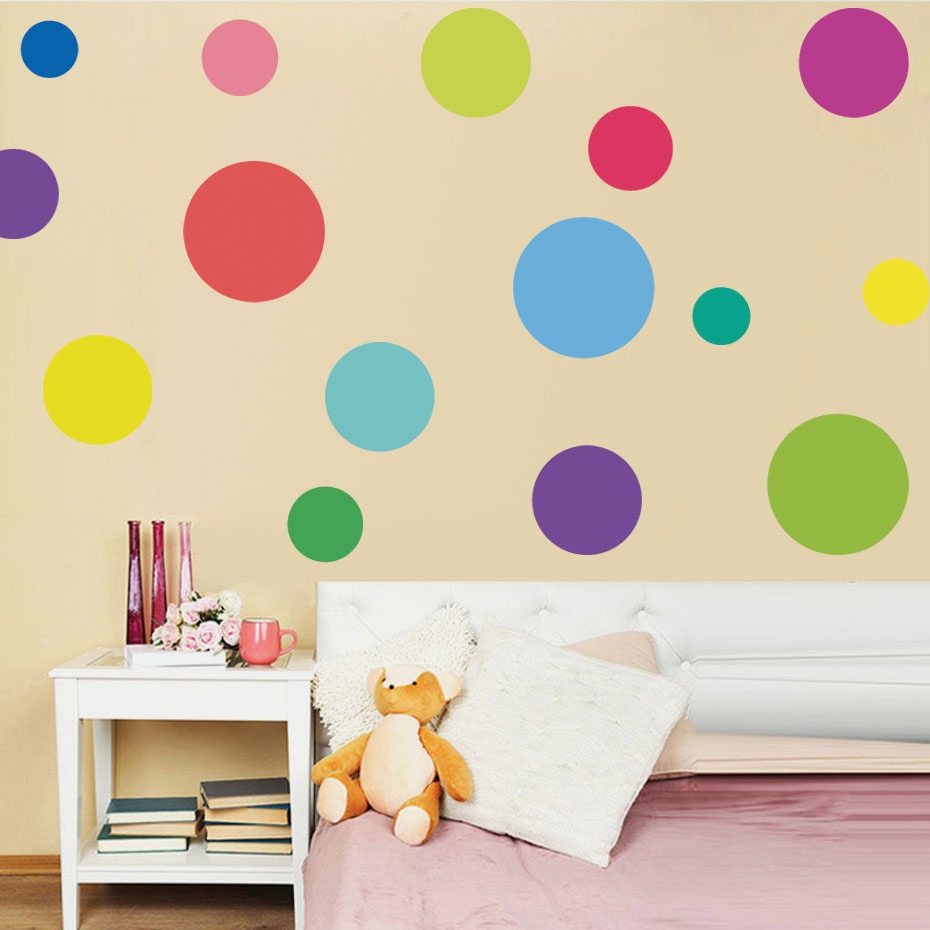 Campuran Ukuran Warna Warni Polka Dot Stiker Dinding