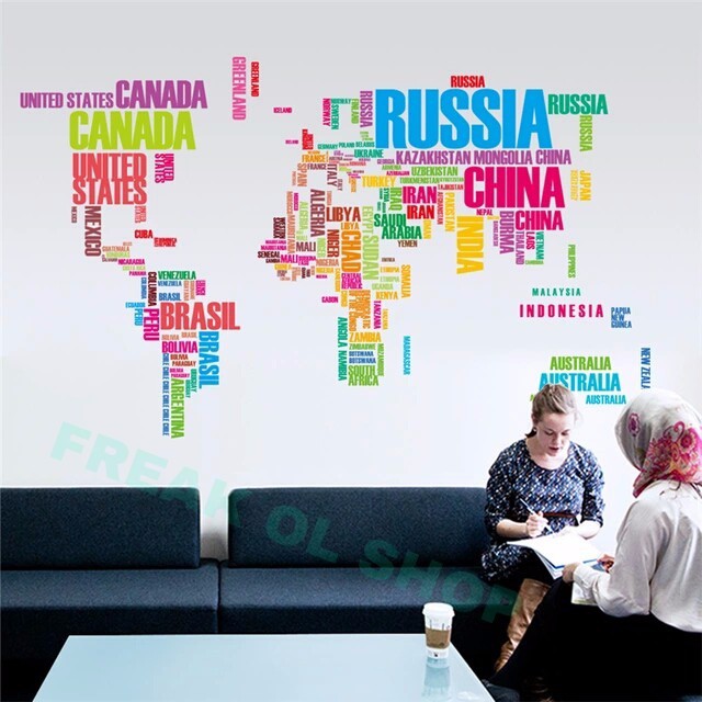 New Peta Dunia Huruf Warna Keren Ukuran Besar Wallpaper Wall Stiker