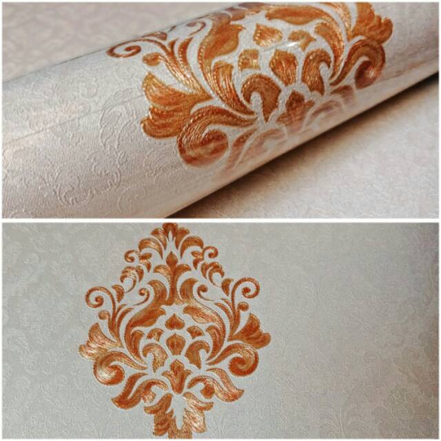 Wallpaper Dinding Kamar Vinyl Kream Batik Kuning Gold Bertekstur Timbul Mewah Cantik Termurah
