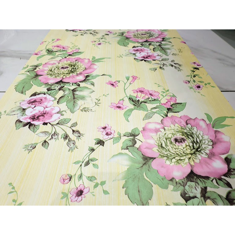 Baru Murah Wallpaper Sticker Dinding Kuning Bunga Pink Daun Hijau Cantik Elegan Mewah 10 Meter
