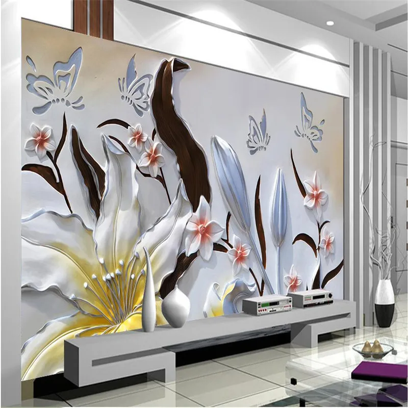 Us 8 85 41 Off Beibehang Lukisan Latar Belakang Fotografi Plum Relief Gaya Minimalis Lily Hotel Buruk Kamar Wallpaper Dinding Mural Untuk Ruang