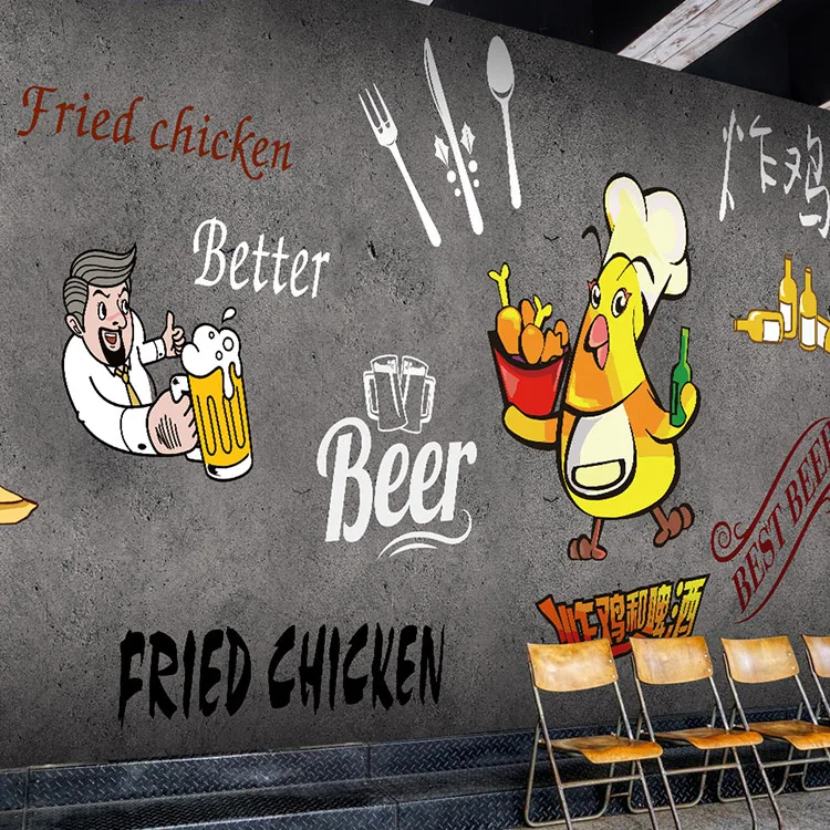 Us 11 78 20 Off Custom Size Photo 3d Cute Cartoon Hand Drawn Fried Chicken Beer Ktv Bar Wallpaper Wall Cafe Wallpaper Mural In Wallpapers From Home