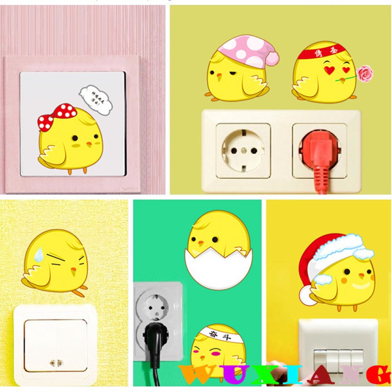 Wuxiang Kartun Hewan Kreatif Lucu Sedikit Kuning Ayam Saklar Stiker Ay1046