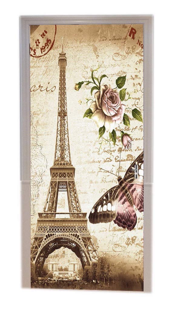 A Monamour Brown Mottled Backgrounds Vintage Floral Butterfly Paris Eiffel Tower Postcard With Stamp Print Vinyl Room Door Decals Wallpaper Wall