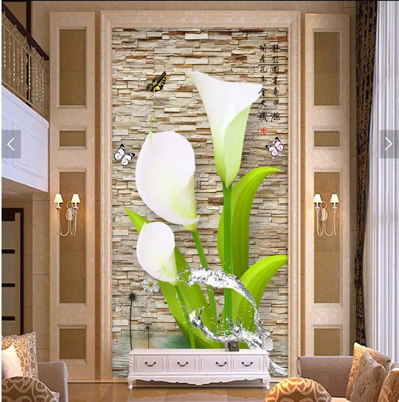 Us 15 04 46 Off Custom Mural Photo 3d Wallpaper Vintage Brick Wall Lilies Water Flowers Porch Painting 3d Wall Murals Wallpaper For Living Room In