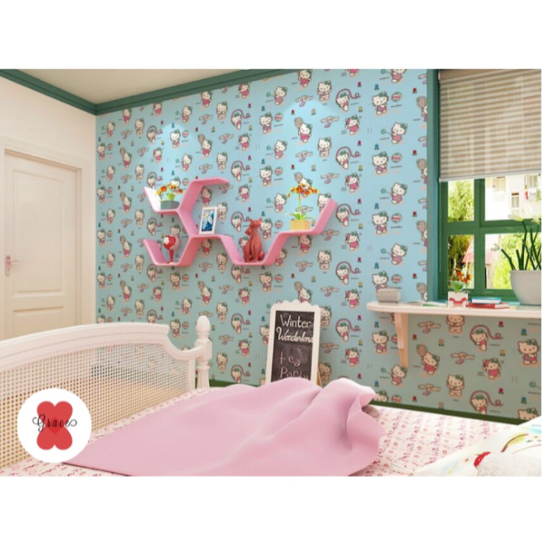 Jual Produk Wallpaper Motif Hellokitty Warna Biru Murah Dan