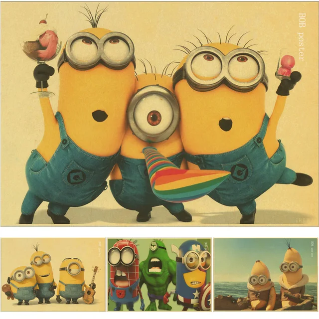 Us 1 45 34 Off Minion Film Stiker Dinding Untuk Kamar Anak Anak Rumah Dekorasi Retro Kraft Wallpaper Vintage Poster Kartun Decals Anak Hadiah Di
