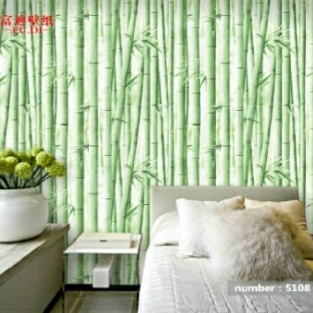 Wallpaper Dinding Stiker Motif Pohon Bambu Hijau