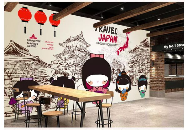 Customized Formaldehyde Free Classic Vintage Wall Paper Hand Painted Cute Japanese Restaurant Background 3d Wallpaper Wallpaper A Desk Wallpaper And