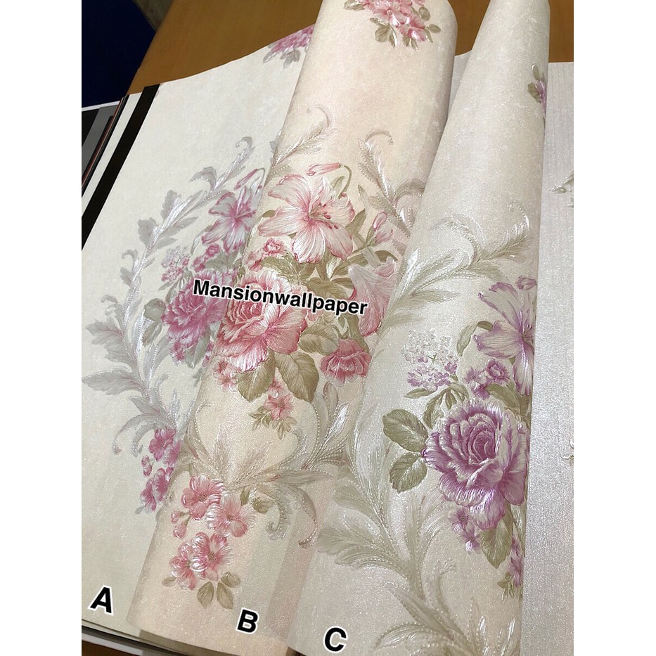Mnwlls300 Wallpaper Dinding Bunga Mewah Pink Ungu Klasik Timbul Lux