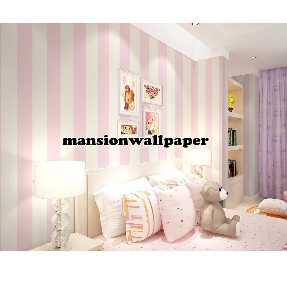 Harga Grosir Wallpaper Dinding Pink Ungu Garis Putih