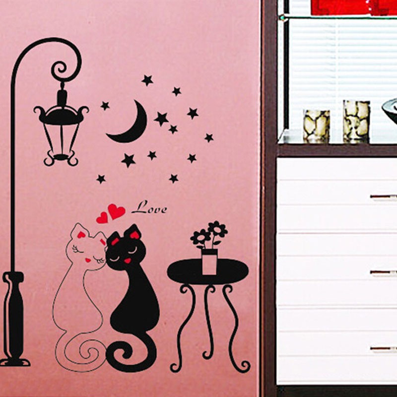 Romantic 2 Cat Lamp Street Wall Sticker Lovers Bedroom Wallpaper For Kids Room