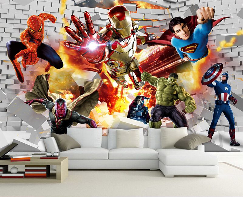Acquista Avengers Wallpaper Wallpaper 3d Foto Hulk Iron Man Superman Personalizzato Fotomurale Boy Kid Camera Da Letto Mattoni Carta Da Parati Pareti