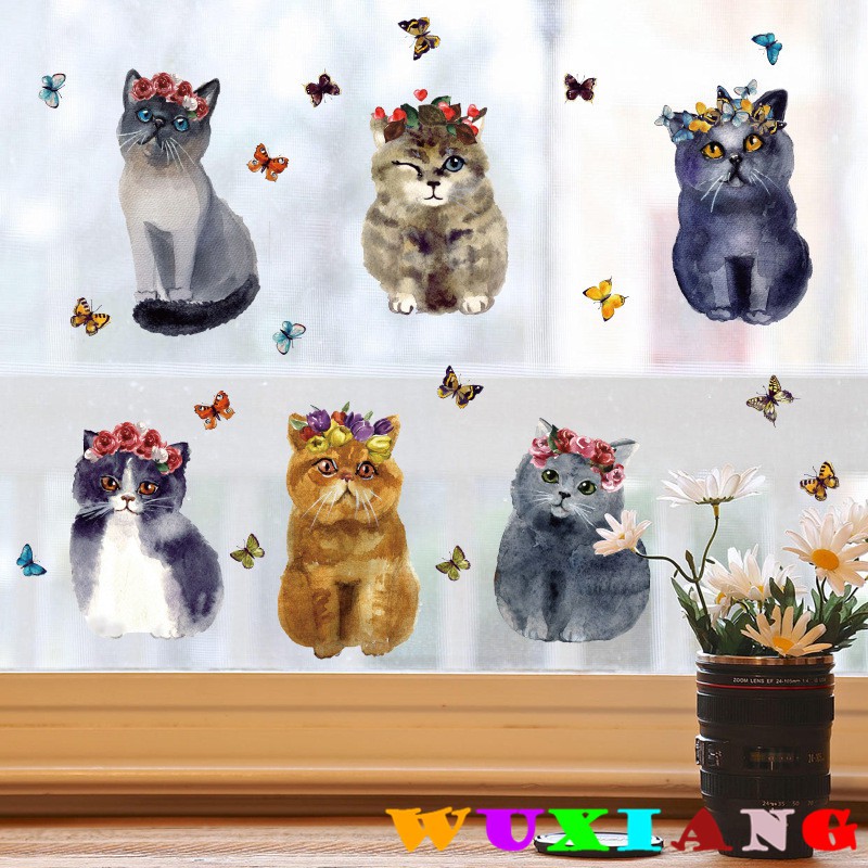 Wuxiang Watercolor Kucing Home Decor Sticker Wallpaper Dinding Sk7138