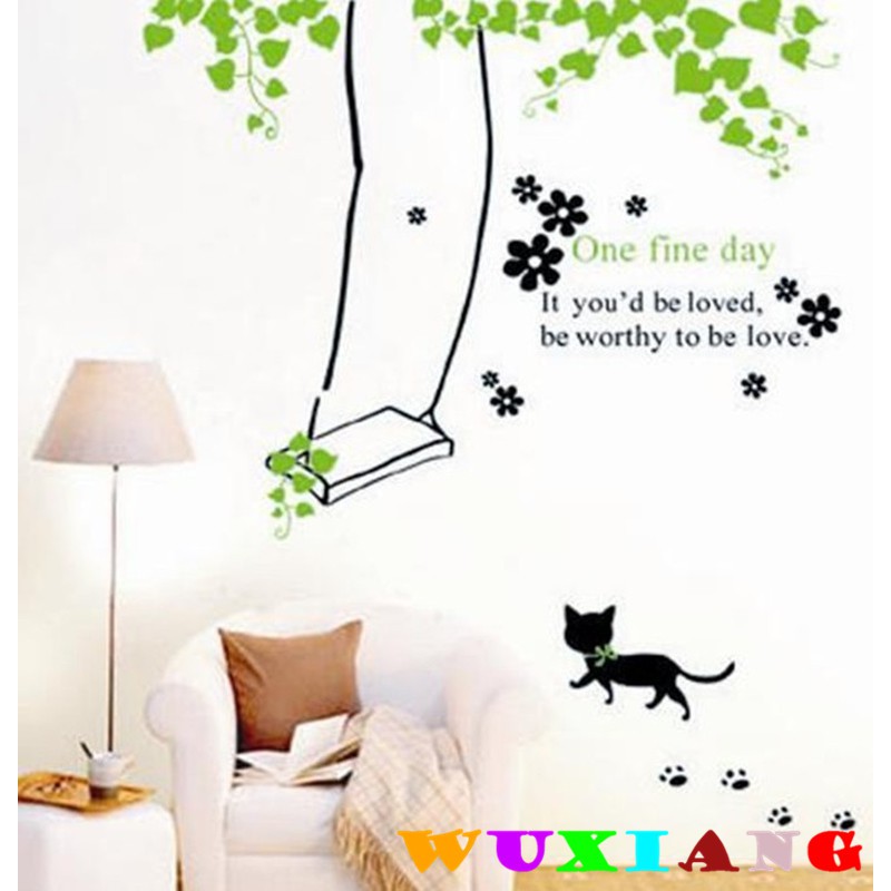 Wuxiang Kartun Kucing Hitam Swing Home Decor Sticker Wallpaper Dinding Ay741