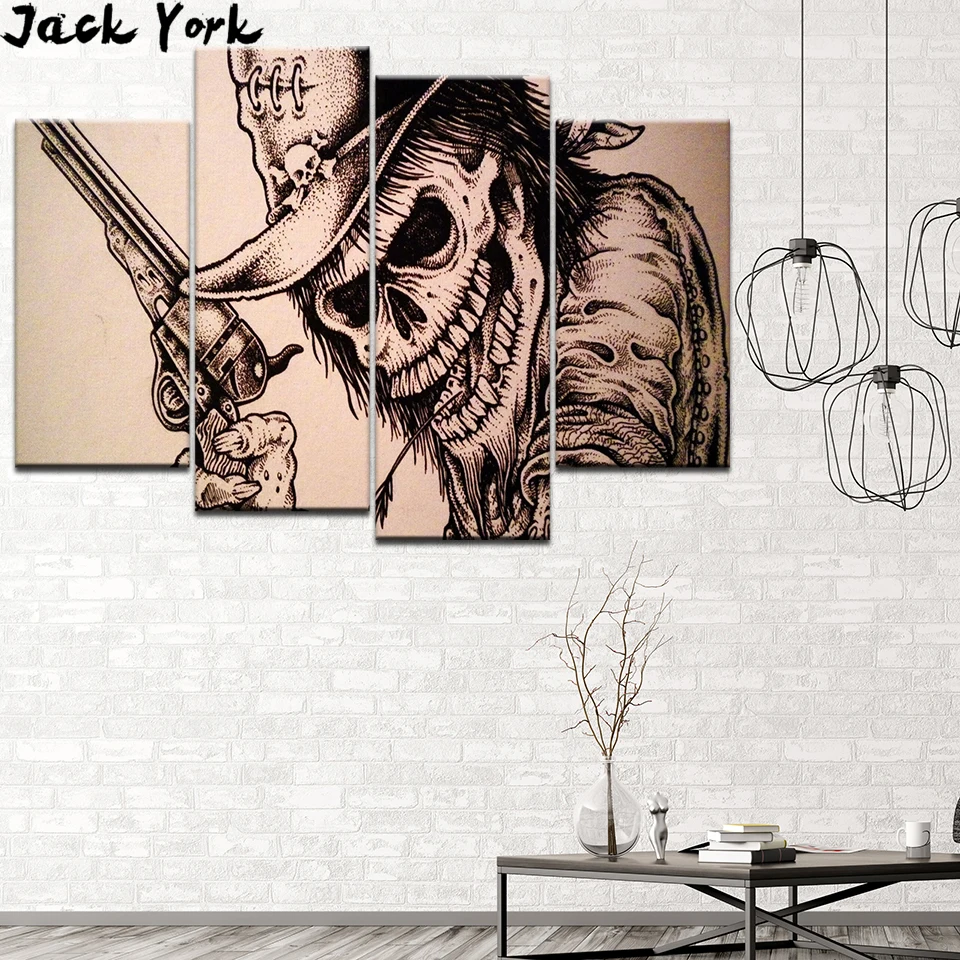 Us 5 39 45 Off Kanvas Lukisan Tengkorak Keren Dan Senjata 4 Pieces Dinding Seni Lukisan Kerangka Modular Wallpaper Cetak Poster Ruang Tamu Dekorasi