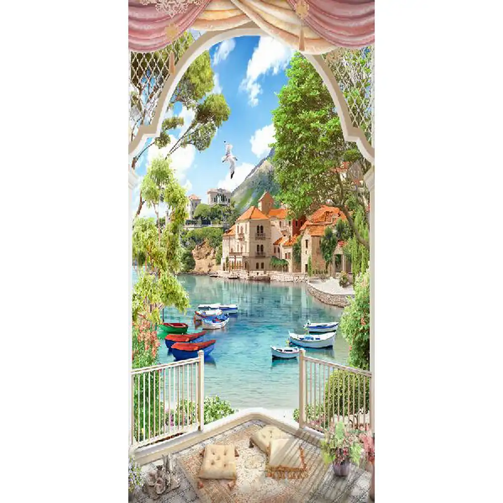 Taman Di Pinggir Pantai Gambar Dinding Mural Dinding Stiker Pintu Wallpaper Stiker Decals Dekorasi Rumah Aug02730