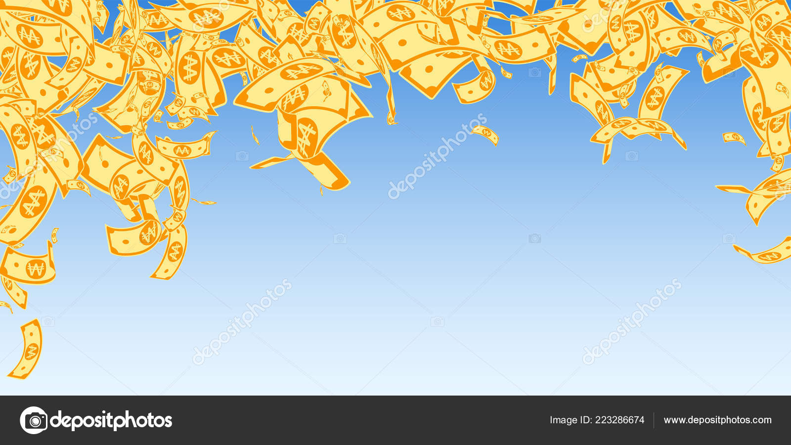 Korean Won Notes Falling Messy Won Bills On Blue Stock
