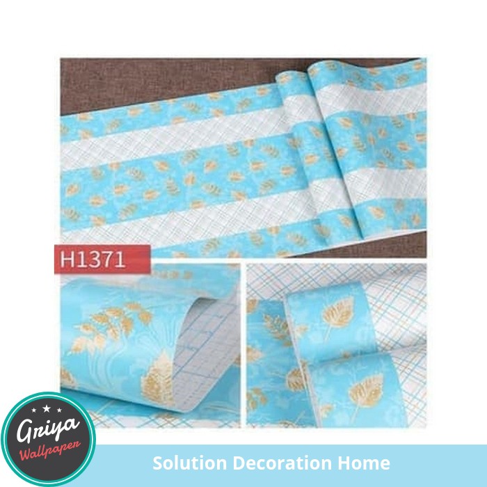 Wallpaper Dinding Tema Salur Biru Daun 45cm X 10m