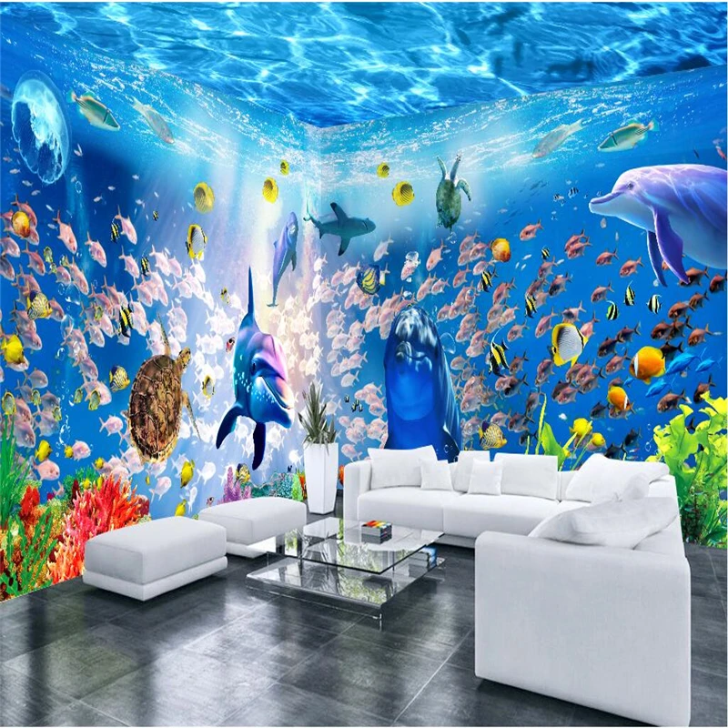 Us 8 25 45 Off Beibehang Foto Kustom Wallpaper Mural Stiker Dinding Mimpi Dunia Bawah Laut Tema Pavilion 3d Latar Belakang Ruang Papel De Parede In