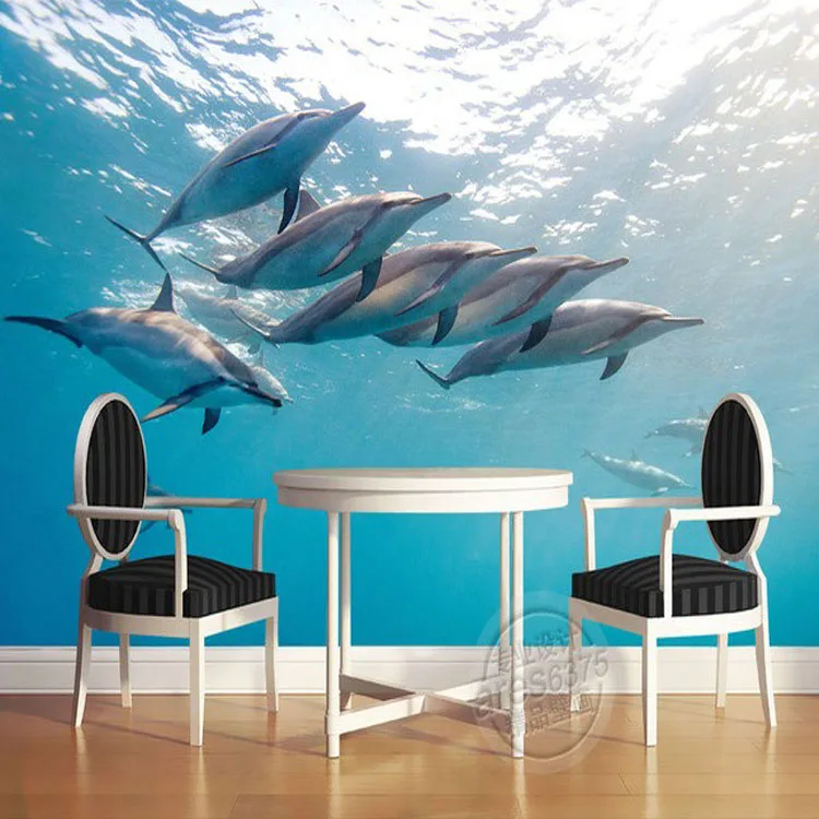 Us 13 77 50 Off 3d Wallpaper Kartun Gelombang Laut Lumba Lumba Ubin Lantai Mural Stiker Kamar Mandi Kamar Tidur Anak Anak Pvc Tahan Air Diri Perekat